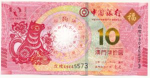 BANCO DA CHINA. Год собаки. Восточный лунный календарь. UNC