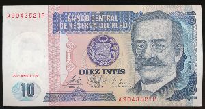 Peru, 10 инти, 1987 Посмотреть подробную информацию о Peru, 10 инти, 1987 Посмотреть очень большое изображение Peru, 10 инти, 1987 Посмотреть другие изображения