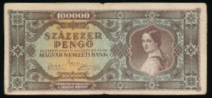 Hungary, 100000 пенгё, 1945 Посмотреть подробную информацию о Hungary, 100000 пенгё, 1945 Посмотреть очень большое изображение Hungary, 100000 пенгё, 1945 Посмотреть другие изображения