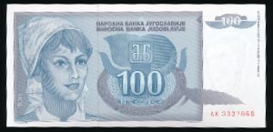 Yugoslavia, 100 динаров, 1992