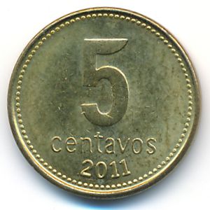 KM#109b Argentina, 5 centavos Brass Plated Steel, 17.2 mm., 2 g. Категории:. Edge Type: Plain. Description Obverse: Radiant Sunface. Description Reverse: Large value, date below. Информация о выпуске (подробности в каталоге):