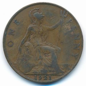 KM#810 Great Britain, 1 penny Bronze, 30.8 mm., 9.45 g. Категории:. Ruler: George V. Obv: Head left Obv. Leg.: GEORGIVS V DEI GRA: BRITT: OMN: REX FID: DEF: IND: IMP: Rev: Britannia seated right. Note: Fully struck and orginal mint lustre coins command a premium. Информация о выпуске (подробности в каталоге):