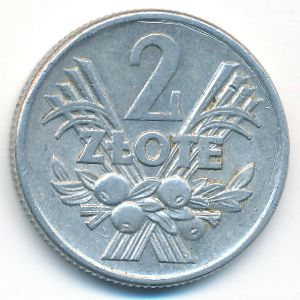 Y#46 Poland, 2 zlote Aluminum, 27 mm., 2.7 g. Категории:. Obv: Eagle with wings open. Rev: Value above design and fruit. Edge: Reeded. Информация о выпуске (подробности в каталоге):