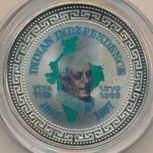 Great Britain., 1 dollar Copper-Nickel, 38.61 mm., 28.28 g. Категории:. India's independence. Map Of India. Color printing. Unusual. Информация о выпуске (подробности в каталоге):