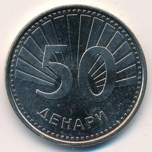 KM#32 Macedonia, 50 denari Brass Категории:. Obv: Classical female bust right. Rev: Value within rays. Информация о выпуске (подробности в каталоге):