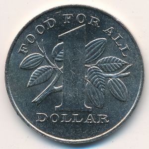 KM#38 Trinidad & Tobago, 1 dollar Copper-Nickel, 32 mm., 12.7 g. Категории:. Series: F.A.O. Obv: National arms. Rev: Value in front of leaves. Информация о выпуске (подробности в каталоге):
