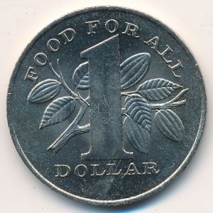KM#38 Trinidad & Tobago, 1 dollar Copper-Nickel, 32 mm., 12.7 g. Категории:. Series: F.A.O. Obv: National arms. Rev: Value in front of leaves. Информация о выпуске (подробности в каталоге):