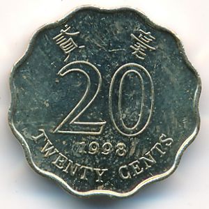 KM#67 Hong Kong, 20 cents Nickel-Brass, 18.95 mm., 2.62 g. Категории:. Ruler: Elizabeth II. Obv: Bauhinia flower. Rev: Denomination. Edge: Scalloped. Информация о выпуске (подробности в каталоге):