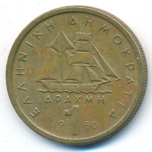 Greece, 1 drachma, 1980 Посмотреть подробную информацию о Greece, 1 drachma, 1980 Посмотреть очень большое изображение Greece, 1 drachma, 1980 Посмотреть другие изображения