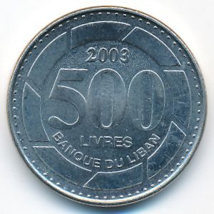 KM#39 Lebanon, 500 livres Nickel Clad Steel, 24.47 mm., 6.06 g. Категории:. Obv: Arabic legend above large value on cedar tree. Rev: Large value “500”, thick segmented circular border. Rev. Legend: BANQUE DU LIBAN. Edge: Plain. Информация о выпуске (подробности в каталоге):