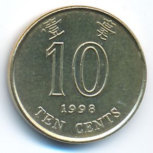 KM#66 Hong Kong, 10 cents Brass Plated Steel, 17.5 mm., 1.84 g. Категории:. Ruler: Elizabeth II. Obv: Bauhinia flower. Rev: Denomination. Edge: Plain. Информация о выпуске (подробности в каталоге):