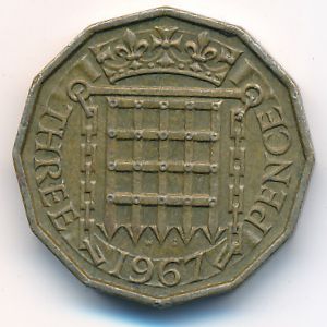 KM#900 Great Britain, 3 pence Nickel-Brass, 21 mm., 6.81 g. Категории:. Ruler: Elizabeth II. Obv: Laureate bust right. Obv. Leg.: without BRITT OMN. Rev: Crowned portcullis. Информация о выпуске (подробности в каталоге):