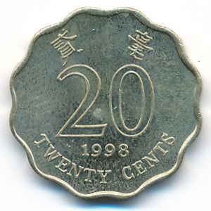 KM#67 Hong Kong, 20 cents Nickel-Brass, 18.95 mm., 2.62 g. Категории:. Ruler: Elizabeth II. Obv: Bauhinia flower. Rev: Denomination. Edge: Scalloped. Информация о выпуске (подробности в каталоге):