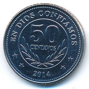 KM#88b Nicaragua, 50 centavos Nickel Clad Steel, 22 mm., 5 g. Категории:. Obverse description: Coat of arms with legend around. Reverse description: Value at center with wreath, with motto at top and date at bottom. Информация о выпуске (подробности в каталоге):