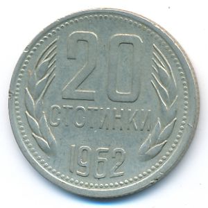 Bulgaria, 20 stotinki, 1962 Посмотреть подробную информацию о Bulgaria, 20 stotinki, 1962 Посмотреть очень большое изображение Bulgaria, 20 stotinki, 1962 Посмотреть другие изображения