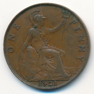 KM#810 Great Britain, 1 penny Bronze, 30.8 mm., 9.45 g. Категории:. Ruler: George V. Obv: Head left Obv. Leg.: GEORGIVS V DEI GRA: BRITT: OMN: REX FID: DEF: IND: IMP: Rev: Britannia seated right. Note: Fully struck and orginal mint lustre coins command a premium. Информация о выпуске (подробности в каталоге):