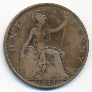 KM#810 Great Britain, 1 penny Bronze, 30.8 mm., 9.45 g. Категории:. Ruler: George V. Obv: Head left Obv. Leg.: GEORGIVS V DEI GRA: BRITT: OMN: REX FID: DEF: IND: IMP: Rev: Britannia seated right. Note: Fully struck and orginal mint lustre coins command a premium. Информация о выпуске (подробности в каталоге):