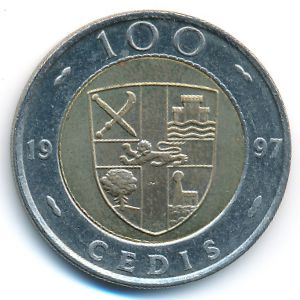 Ghana, 100 cedis, 1997 Посмотреть подробную информацию о Ghana, 100 cedis, 1997 Посмотреть очень большое изображение Ghana, 100 cedis, 1997 Посмотреть другие изображения