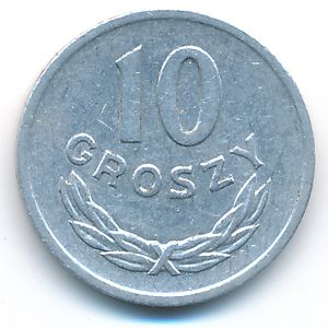 Y#AA47 Poland, 10 groszy (1968 г.) Aluminum, 17.6 mm., 0.7 g. Категории:. Obv: Eagle with wings open. Rev: Value above sprig. Edge: Plain. Note: Varieties in date size exist. Смотрите подробное описание типа в каталоге.