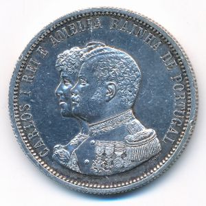 KM#539 Portugal, 1000 reis (1898 г.) 0.9170 Silver, 25 g. Категории:. Subject: 400th Anniversary Discovery of India. Obv: Conjoined busts left. Смотрите подробное описание типа в каталоге.