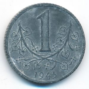 KM#4 Bohemia & Moravia, 1 koruna (1943 г.) Zinc, 23 mm., 4.5 g. Категории:. Obv: Czech lion crowned left. Rev: Linden branches divide denomination and date. Edge: Milled. Смотрите подробное описание типа в каталоге. Уточните информацию о наличии этого товара по телефону +7 495 925-96-98.