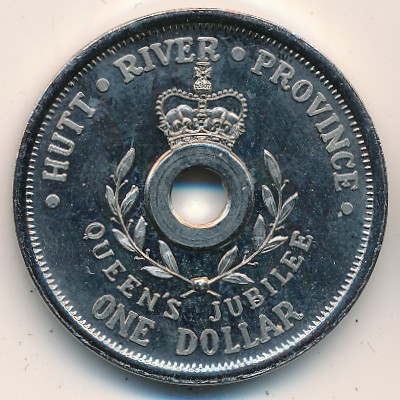 X#7 Хатт Ривер., 1 доллар Медь, покрытая никелем Категории: Unusual, Необычная форма, Юбилейные. Unusual. Информация о выпуске (подробности в каталоге):