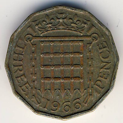 Купить монету Великобритания, 3 пенса (1966 г.)