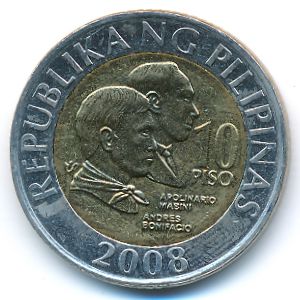 KM#278 Филиппины, 10 песо Биметалл, 26.5 мм, 8.7 г Категории: Выдающиеся личности, Юбилейные. Информация о выпуске (подробности в каталоге):