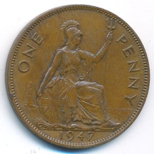KM#845 Великобритания, 1 пенни Бронза, 30.8 мм, 9.45 г Категории: Без тематики. Георг VI. Информация о выпуске (подробности в каталоге):