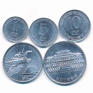 Набор из 5 монет номиналами 1 вон, 50 чон, 10 чон, 5 чон, 1 чон
