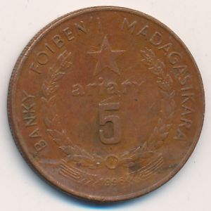 KM#23 Мадагаскар, 5 ариари Медь-Сталь, 24 мм, 4.7 г Категории: Растения. Рис. Информация о выпуске (подробности в каталоге):