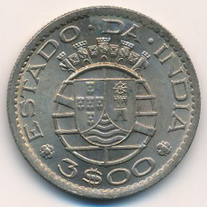 Португальская Индия, 3 эскудо (1959 г.) Посмотреть подробную информацию о Португальская Индия, 3 эскудо (1959 г.) Посмотреть очень большое изображение Португальская Индия, 3 эскудо (1959 г.) Посмотреть другие изображения