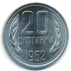 KM#63 Болгария, 20 стотинок Никель-Латунь, 19.62 мм, 2.85 г Категории: Без тематики. Аверс: Дата 9 • IX • 1944 на ленте. Информация о выпуске (подробности в каталоге):