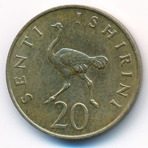 KM#2 Танзания, 20 сенти Никель-Латунь, 24 мм, 5 г Категории: Животные, Птицы. Страус. Толщина: 1,33 мм. Гурт – гладкий. Информация о выпуске (подробности в каталоге):