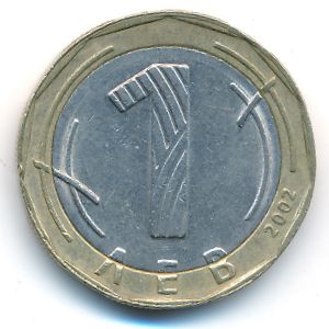 KM#254 Болгария, 1 лев (2002 г.) Биметалл, 24.3 мм, 7.03 г Категории: Без тематики, Выдающиеся личности, Юбилейные. Аверс: Образ Святого Ивана Рыльского, святого Болгарской Церкви, наиболее почитаемого святого покровителя болгарского народа. Смотрите подробное описание типа в каталоге.