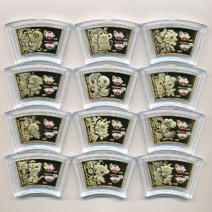 Esposizione Universale Milano 2015, Expo 2015. Всемирная выставка 2015 года в Милане, неофициально «Экспо-2015». Набор из 12 жетонов Китая. Знаки Зодиака. Цветная эмаль, животные.