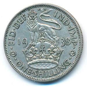 KM#853 Великобритания, 1 шиллинг (1938 г.) 0.5000 Серебро, 23.5 мм, 5.6552 г Категории: Без тематики. Аверс: Георг VI. Английский герб, лев на короне. Смотрите подробное описание типа в каталоге. Уточните информацию о наличии этого товара по телефону +7 495 925-96-98.