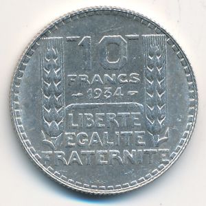 KM#878 Франция, 10 франков (1934 г.) 0.6800 Серебро, 28 мм, 10 г Категории: Без тематики. Смотрите подробное описание типа в каталоге. Уточните информацию о наличии этого товара по телефону +7 495 925-96-98.