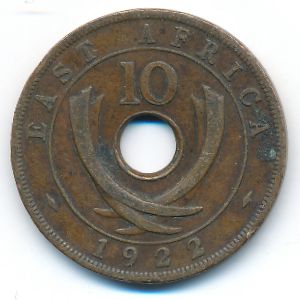 KM#19 Восточная Африка, 10 центов (1922 г.) Бронза, 31 мм, 11.14 г Категории: Необычная форма. Георг V Смотрите подробное описание типа в каталоге.