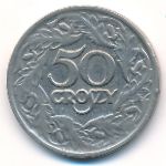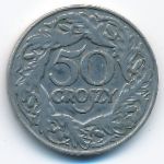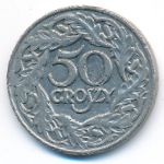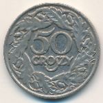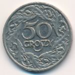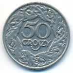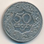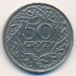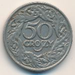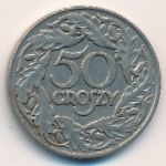 Y#13 Польша, 50 грошей Никель, 23 мм, 5 г Аверс: в центре - герб Польши - коронованный орел. Над орлрм дата - 1923. По кругу надпись: RZECZPOSPOLITA POLSKA. Надпись и дата разделены ромбами. Реверс: в центре в венке из дубовых листьев номинал в две строки - 50 GROSZY. |