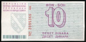Купить бону Bosnia-Herzegovina, 10 динаров, 1992