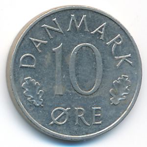KM#860.1 Denmark, 10 ore Copper-Nickel, 18 mm., 3 g. Категории:. Ruler: Margrethe II. Obv: Crowned MIIR monogram divides date, mint mark and initials S-B below. Rev: Value flanked by oak leaves. Информация о выпуске (подробности в каталоге):