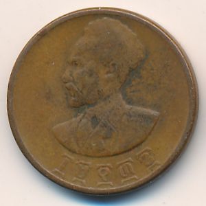 KM#33 Ethiopia, 5 cents Copper, 20 mm. Категории:. Description Obverse: Bust left, date below. Description Reverse: Crowned lion right, right foreleg raised holding ribboned cross. Designer Obverse: Gilroy Roberts. Designer Reverse: Gilroy Roberts. Информация о выпуске (подробности в каталоге):