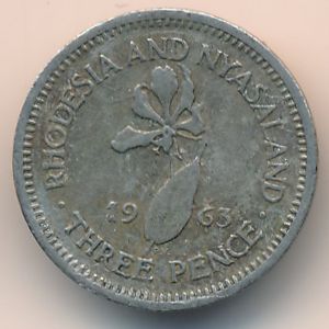 Rhodesia and Nyasaland, 3 pence, 1963 Посмотреть подробную информацию о Rhodesia and Nyasaland, 3 pence, 1963 Посмотреть очень большое изображение Rhodesia and Nyasaland, 3 pence, 1963 Посмотреть другие изображения