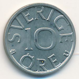 KM#850 Sweden, 10 ore Copper-Nickel, 14.54 mm., 1.45 g. Категории:. Ruler: Carl XVI Gustaf. Obv: Crowned monogram divides date. Rev: Value. Edge: Plain. Информация о выпуске (подробности в каталоге):