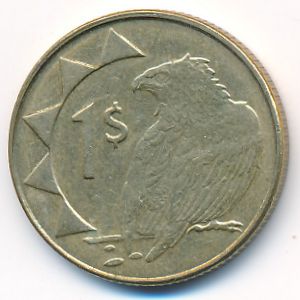 KM#4 Namibia, 1 dollar Brass, 22.3 mm., 4.96 g. Категории:. Obv: National arms. Rev: Value divides Bateleur eagle at right, partial sun design at left. Информация о выпуске (подробности в каталоге):