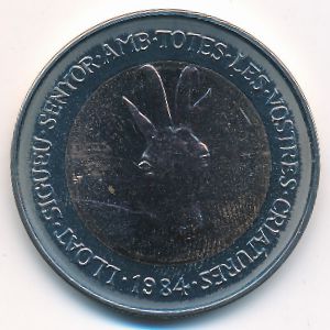 KM#21 Andorra, 2 diners Bi-metallic, 32 mm., 15 g. Категории:. Subject: Wildlife. Obv: Crowned shield divide value. Rev: Chamois facing. Информация о выпуске (подробности в каталоге):