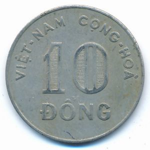 KM#8 Vietnam, 10 dong Copper-Nickel, 25.5 mm., 5.5 g. Категории:. Obv: Denomination. Obv. Legend: VIET-NAM CONG-HOA. Rev: Rice stalks. Edge: Reeded. Информация о выпуске (подробности в каталоге):