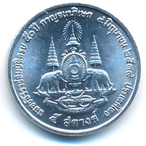 Ruler: Rama IX. Subject: 50th Anniversary - Reign of King Rama IX. Obv: Bust facing. Rev: Arms. Edge: Reeded.