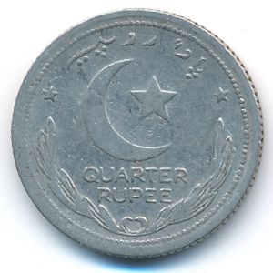 KM#5 Pakistan, 1/4 rupee Nickel, 19 mm., 2.75 g. Категории:. Obv: Tughra and date flanked by stars above sprigs. Rev: Crescent, stars and value above sprigs. Edge: Reeded. Информация о выпуске (подробности в каталоге):